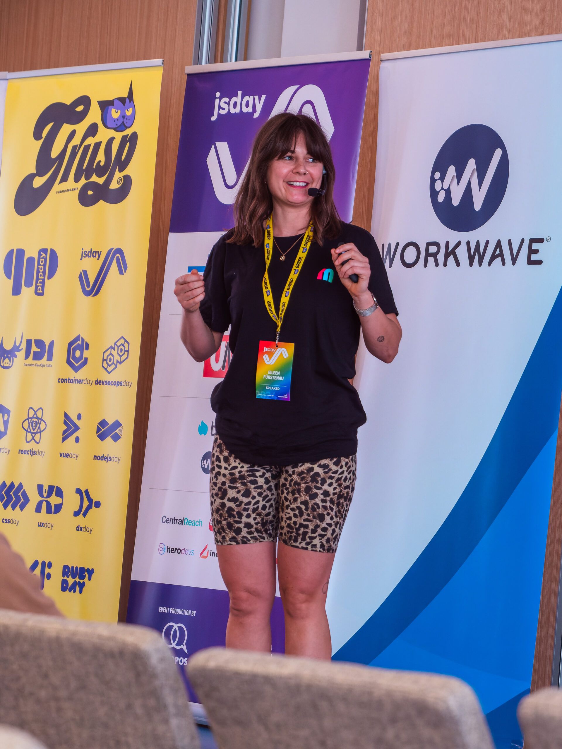 Päivän päätti Lorenzo Pierin mielenkiintoinen ja hauskasti toteutettu esitys ”The Event Loop Fairytale”, jossa hän avasi Node.js:n tapahtumasilmukan. Lorenzo selitti yksityiskohtaisesti, miten tapahtumasilmukka toimii ja kuinka kehittäjät voivat hyödyntää sitä tehokkaasti asynkronisessa koodissa.