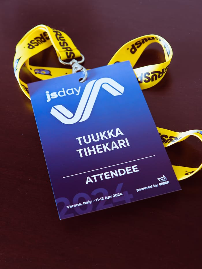 jsday on GrUSPin järjestämä johtava italialainen JavaScript-konferenssi, joka pidettiin viehättävässä Veronan kaupungissa sekä verkossa 11. ja 12. huhtikuuta 2024. Tapahtuman tarkoituksena on tarjota ainutlaatuinen tilaisuus niin teknisille ammattilaisille kuin liiketoimintaan suuntautuneille osallistujille kuulla web-kehityksen uusimmista suuntauksista, sekä solmia uusia kontakteja ja löytää mahdollisia yhteistyökumppaneita. Tapahtuma sopii kaikille, jotka haluavat pysyä ajan hermolla JavaScriptin ja web-teknologian kehityksessä.